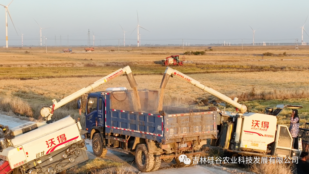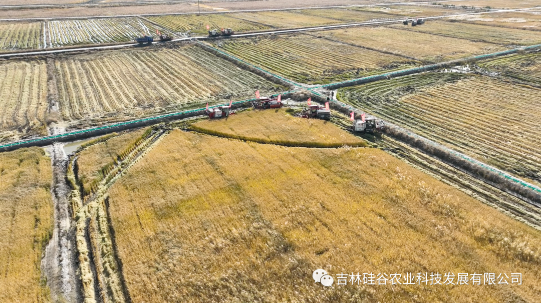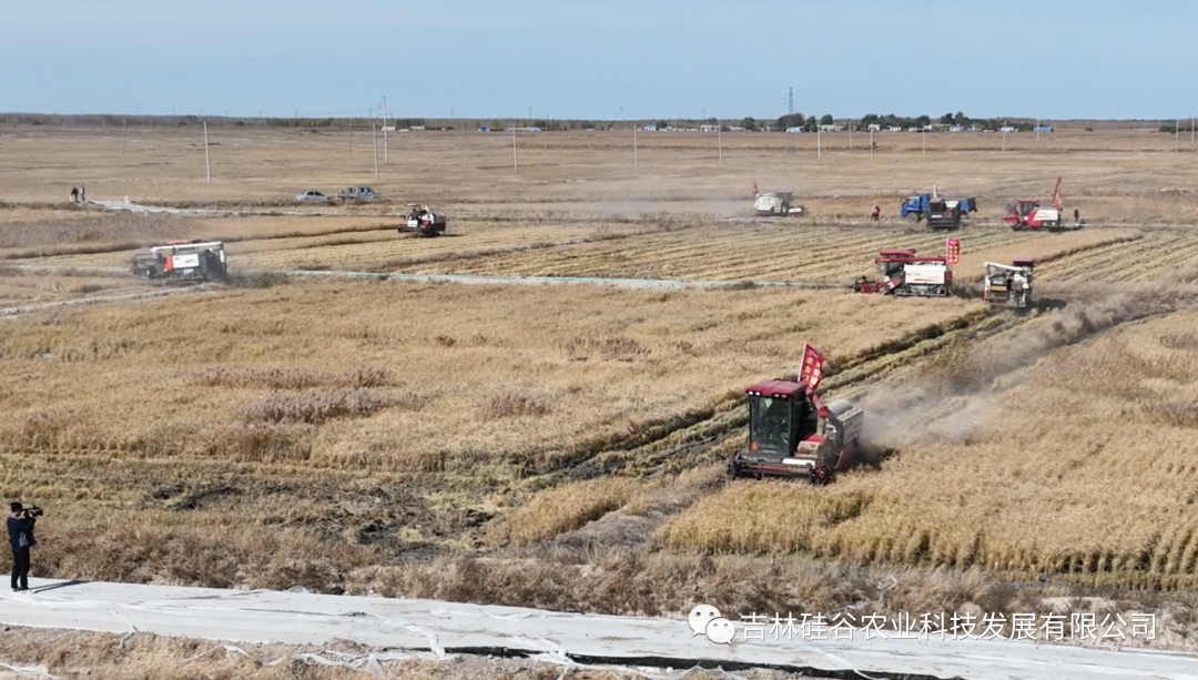 吉林硅谷農(nóng)業(yè)科技發(fā)展有限公司全體人員為此次秋收做了充足的準(zhǔn)備。壯觀!機(jī)器轟鳴,稻浪翻滾,稻田里沉甸甸的稻穗壓彎了腰,金色稻田里,100余臺(tái)收割機(jī)來(lái)往穿梭。