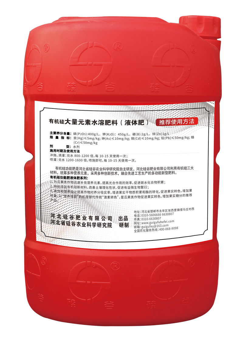 Organosilicon liquid fertilizer is another revolution of chemical fertilizer. It is an inevitable way to solve the problem of low utilization rate of chemical fertilizer and the development direction of green and environmental protection of chemical fertilizer. Organosilicon liquid fertilizer is the essence of clear liquid fertilizer, the effect of suspended fertilizer, environmental protection and pollution free, the first choice of high-end agricultural products. Organosilicon liquid fertilizer, create a new era of green agricultural products! Leading agriculture, Silicon Valley win in the peak with you!