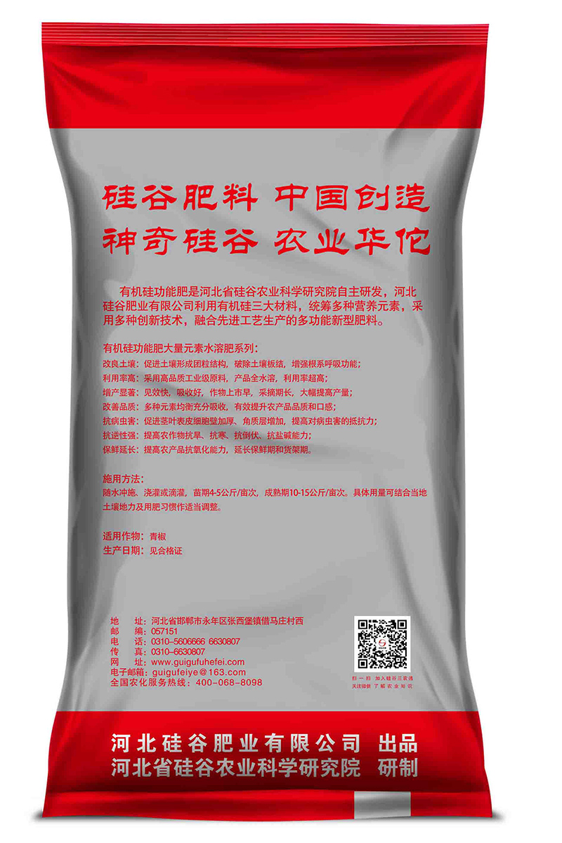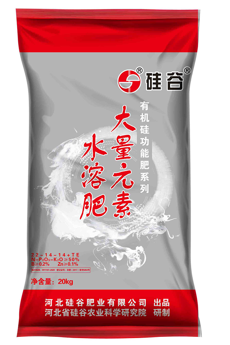 The organosilicon large element water-soluble fertilizer is made of high-quality industrial raw materials, with the characteristics of full water-soluble and high utilization rate, which meets the use requirements of modern agricultural irrigation and drip irrigation, as well as the development direction of national weight loss and efficiency, ecological and environmental protection.