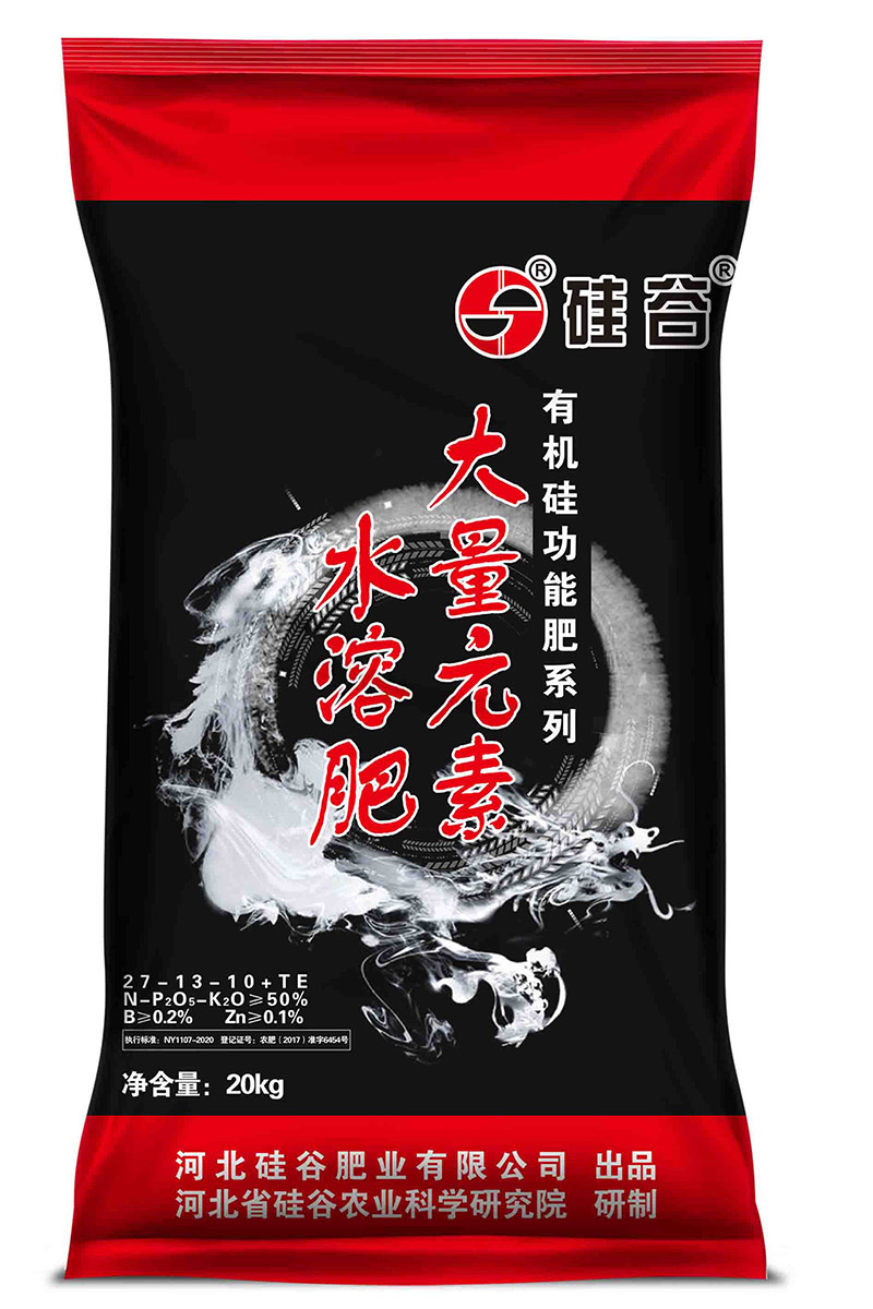 The organosilicon large element water-soluble fertilizer is made of high-quality industrial raw materials, with the characteristics of full water-soluble and high utilization rate, which meets the use requirements of modern agricultural irrigation and drip irrigation, as well as the development direction of national weight loss and efficiency, ecological and environmental protection.