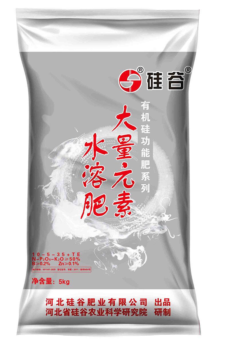 The organosilicon large element water-soluble fertilizer is made of high-quality industrial raw materials, with the characteristics of full water-soluble and high utilization rate, which meets the use requirements of modern agricultural irrigation and drip irrigation, as well as the development direction of national weight loss and efficiency, ecological and environmental protection.