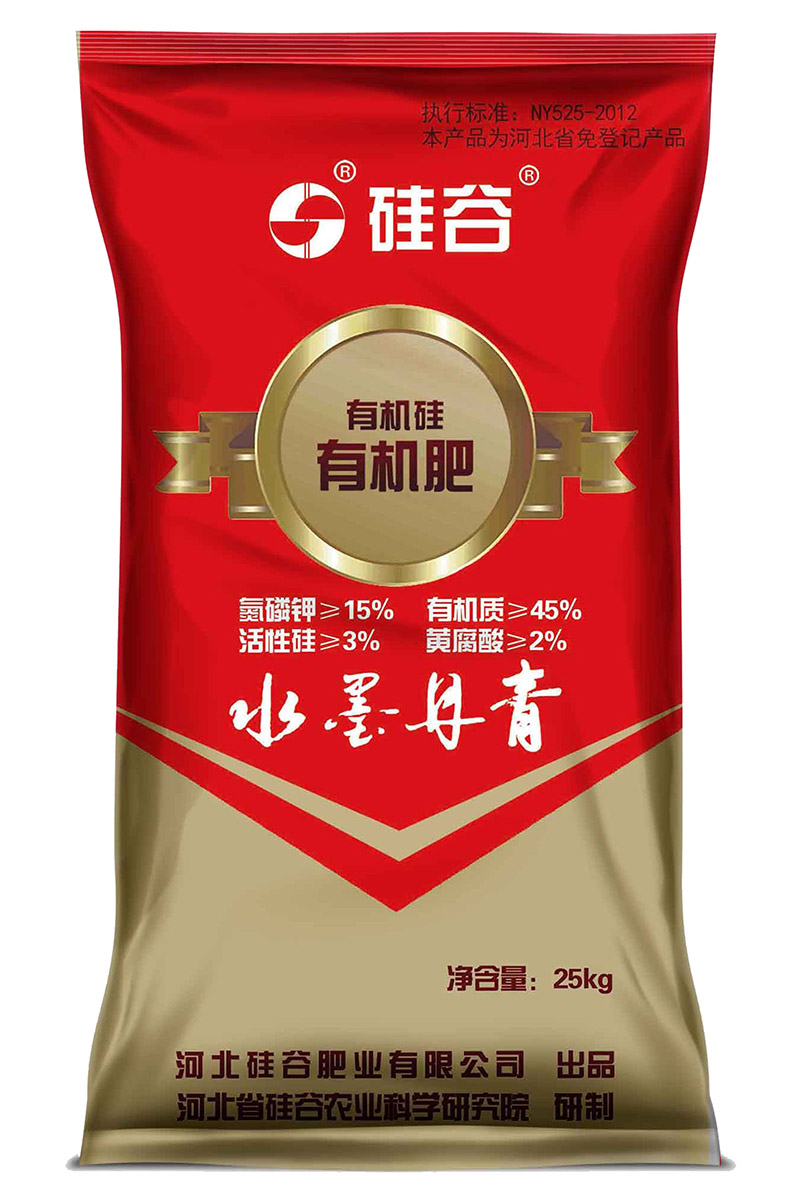 The water-soluble organosilicon organic fertilizer is a multi-functional fertilizer made of new organosilicon materials, high active organic matter and N-P-K by special process. The product contains more than 45% organic matter, more than 3% active silicon, more than 2% fulvic acid, and 15% N-P-K. The product can improve soil ecological environment, maintain soil nutrient balance, increase yield and quality, and restore the original ecological taste of agricultural products.