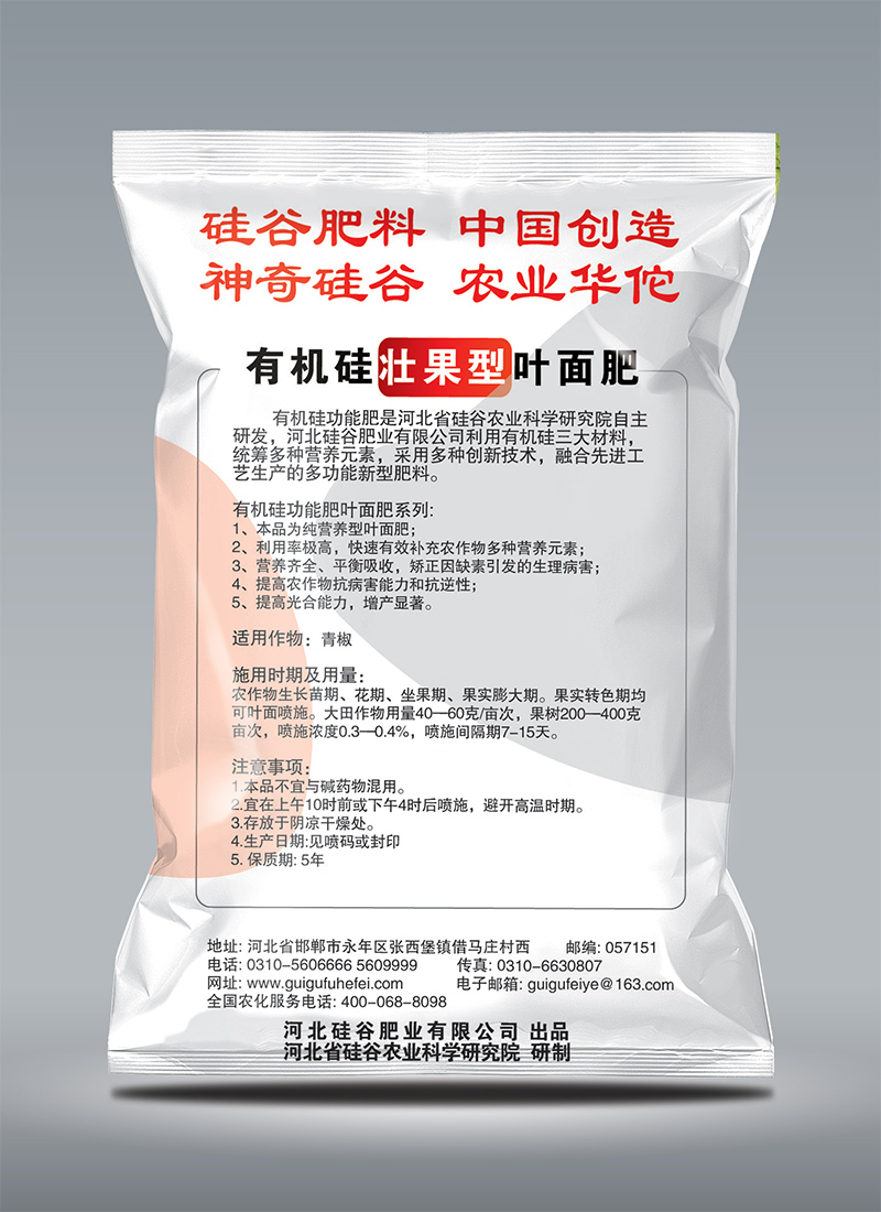 Organosilicon foliar fertilizer is divided into organosilicon potassium dihydrogen phosphate and love at first sight series (growth promoting type, flower promoting type, fruit strengthening type and balanced type).